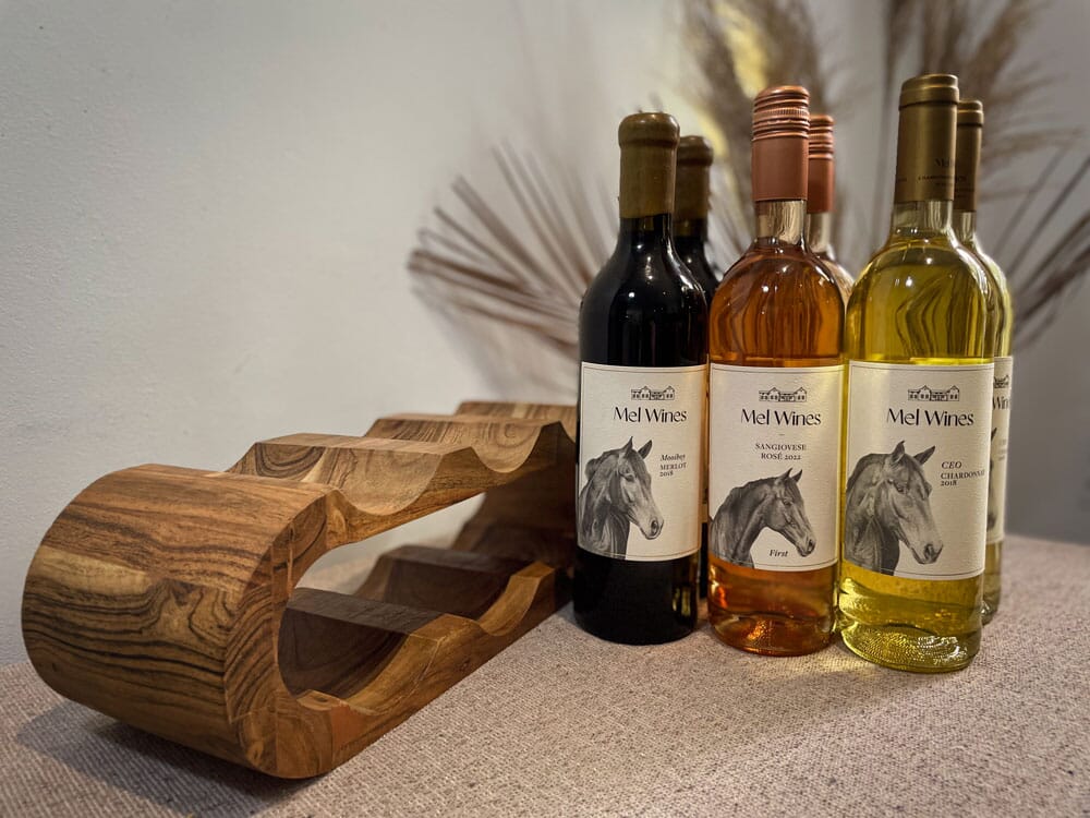 At Mel Wines, each bottle bears the name of one of our noble horses, celebrating the spirit and character of our horses in every sip. This blend of viticulture and equestrian grace highlights the deep connections between the land, the vines, and the vibrant life it supports.